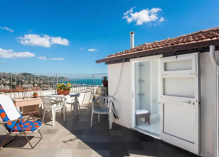 ベッドルーム1室のLa Terrazza Del Nonno - Happy Rentals サンレモアパートは、宿泊から歩いて6分離れたマイク ボンジョルノの像などの数多くの観光スポットに近接しています。 アリストン劇場から400メートル以内の距離に位置するこの50m²のアパートには、リラックスしながら海の景色を楽しめるテラスがあります。